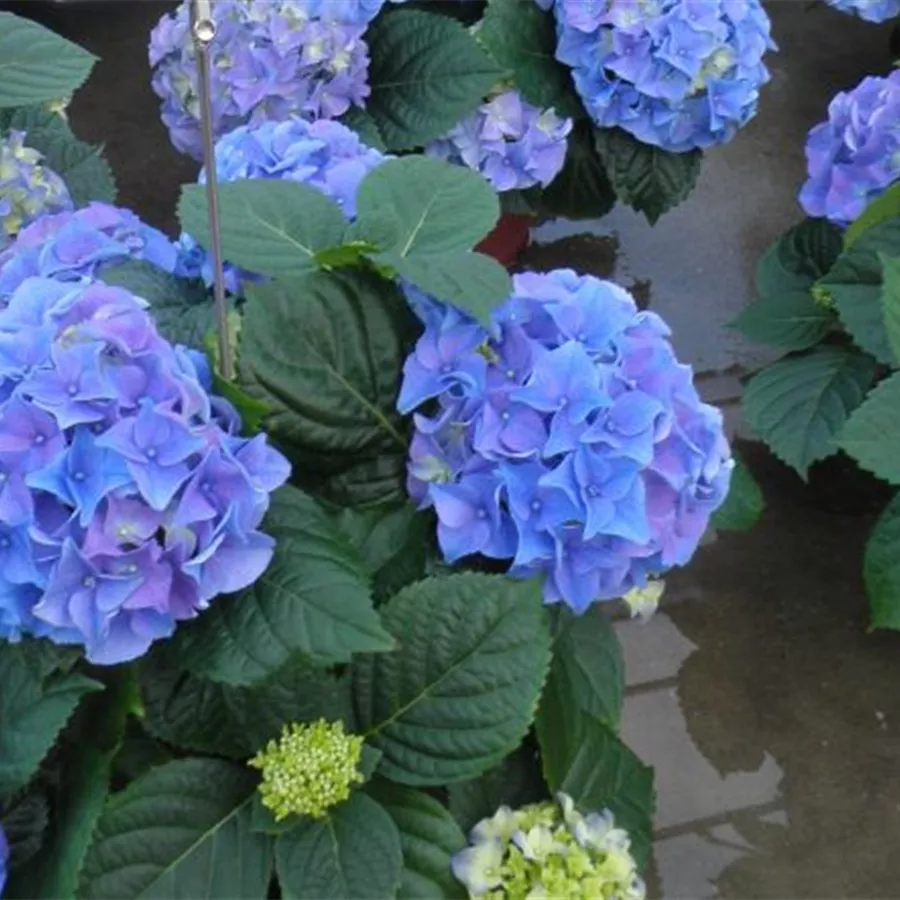 Diese blaublütige Sorte besticht durch ihren kompakten Wuchs und ist eine schöne Ergänzung für jeden Garten.Die Bauernhortensie 'Early Blue'-S- hat ballförmige Blütenstände, die sich anfangs grünblau zeigen und in voller Blüte blau bis blauviolett erscheinen. Blütezeit von Juni bis Oktober. Zum Herbst hin nimmt die Blüte eine dunkelgrüne Färbung, mit violetter Abtönung an.