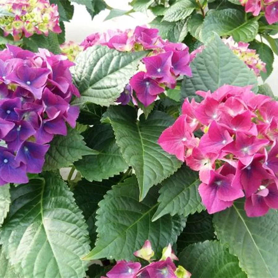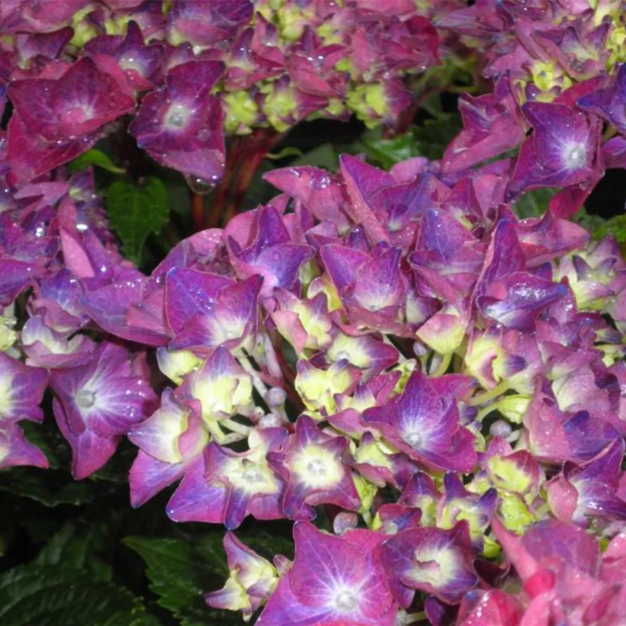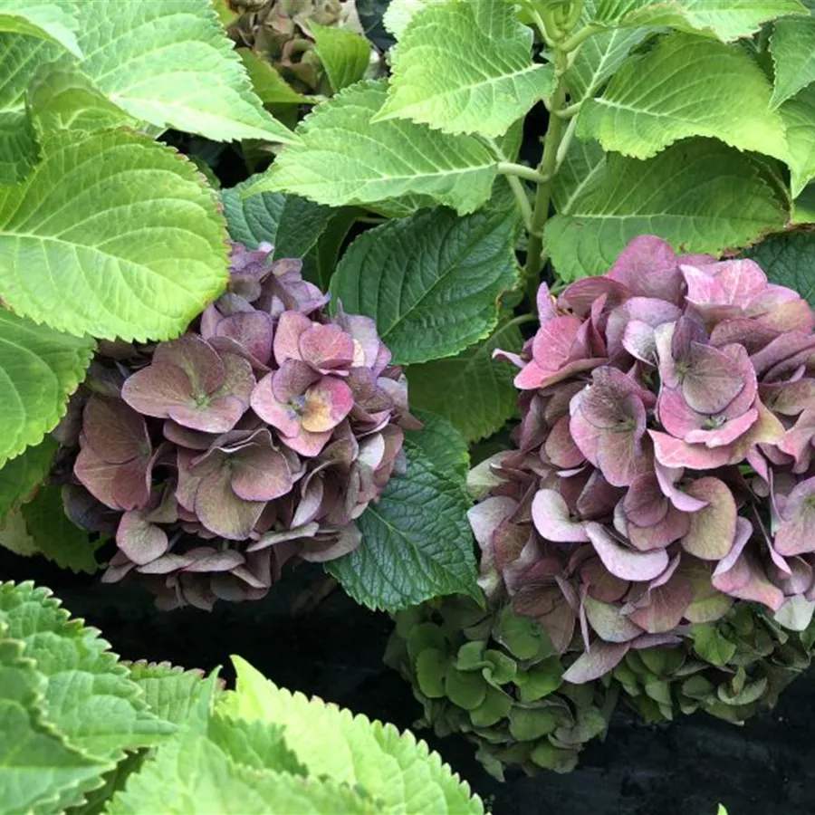 Hot Red lila, eine kräftige Sorte mit blauen Blüten, die genau wie ihre Schwester nicht mehr aus dem Hortensiensortiment wegzudenken ist. Kräftig, dunkle Blütenfärbung, kompakter Wuchs.Die Bauernhortensie 'Hot Red'®-blau hat ballförmige Blütenstände, die sich tiefrot bis violettrot zeigen und mit einem schönen blauen „Knopf“ in den einzelnen Blüten hervorheben. Im Herbst bekommen sie eine grüne bis dunkelgrüne Färbung, mit violettroter Abtönung. Blütezeit von Juni bis Oktober.