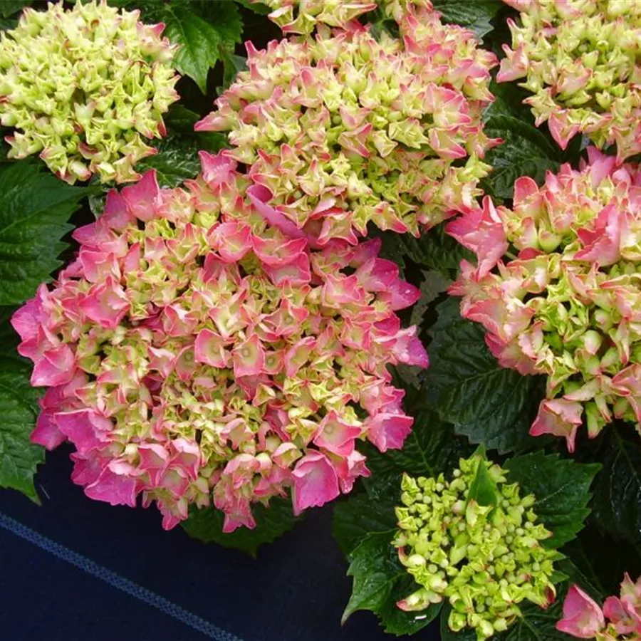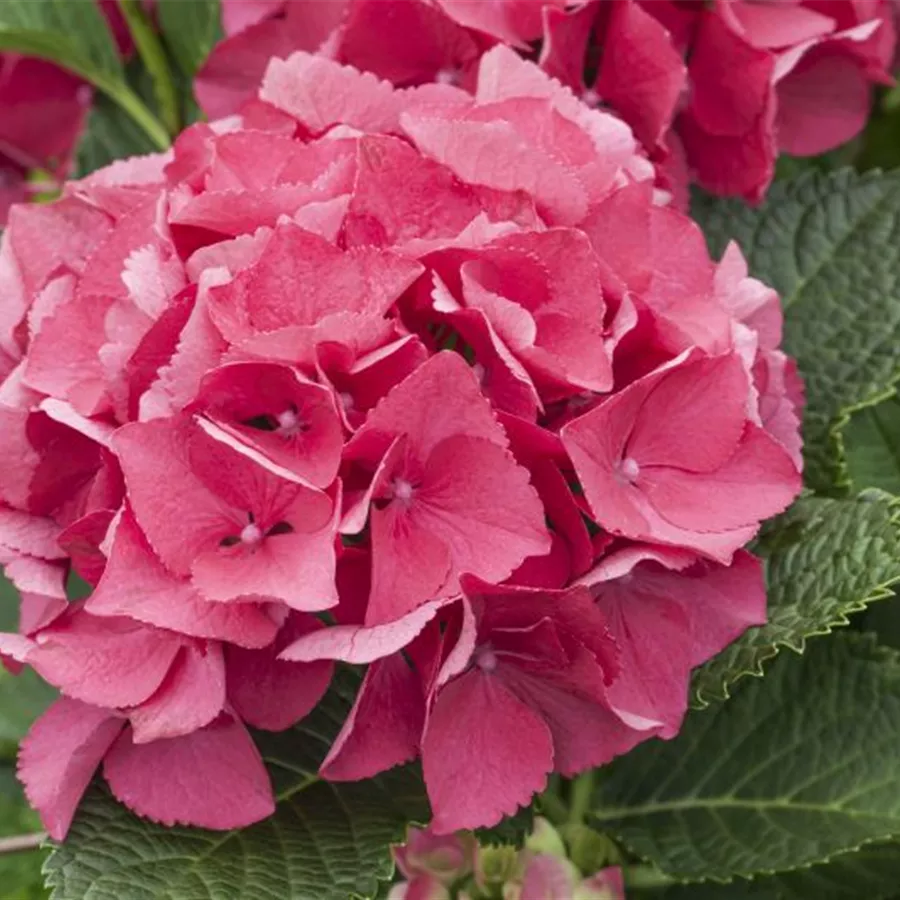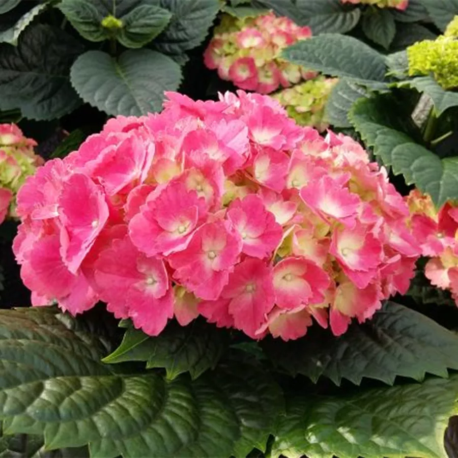 Eine alte und bewährte Sorte, mit guten Blüteneigenschaften und kräftigen Trieben. Blüht auch noch an sonnigen Standorten recht gut.Die Bauernhortensie 'Schöne Bautznerin' hat ballförmige Blütenstände, die sich dunkelrosa bis hellrot zeigen und im Herbst eine grüne Färbung, mit rötlicher Abtönung bekommen. Blütezeit von Juni bis Oktober.