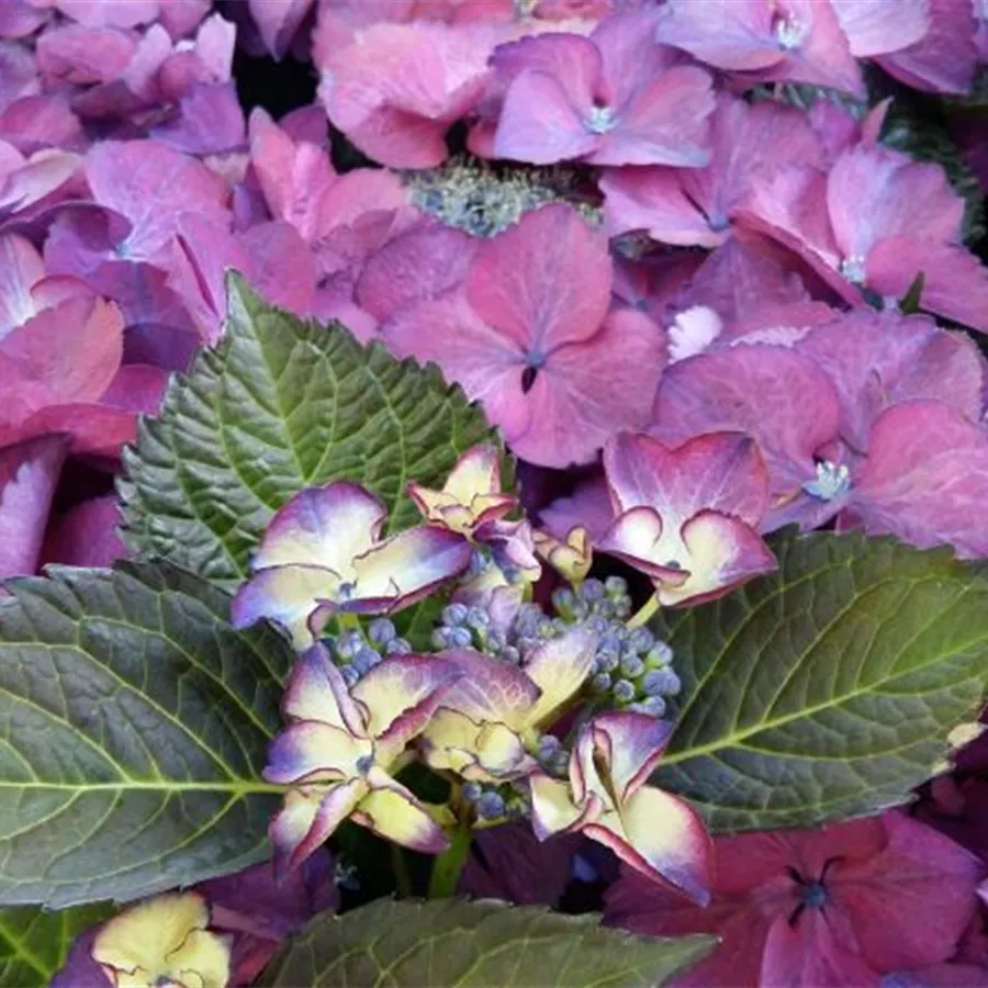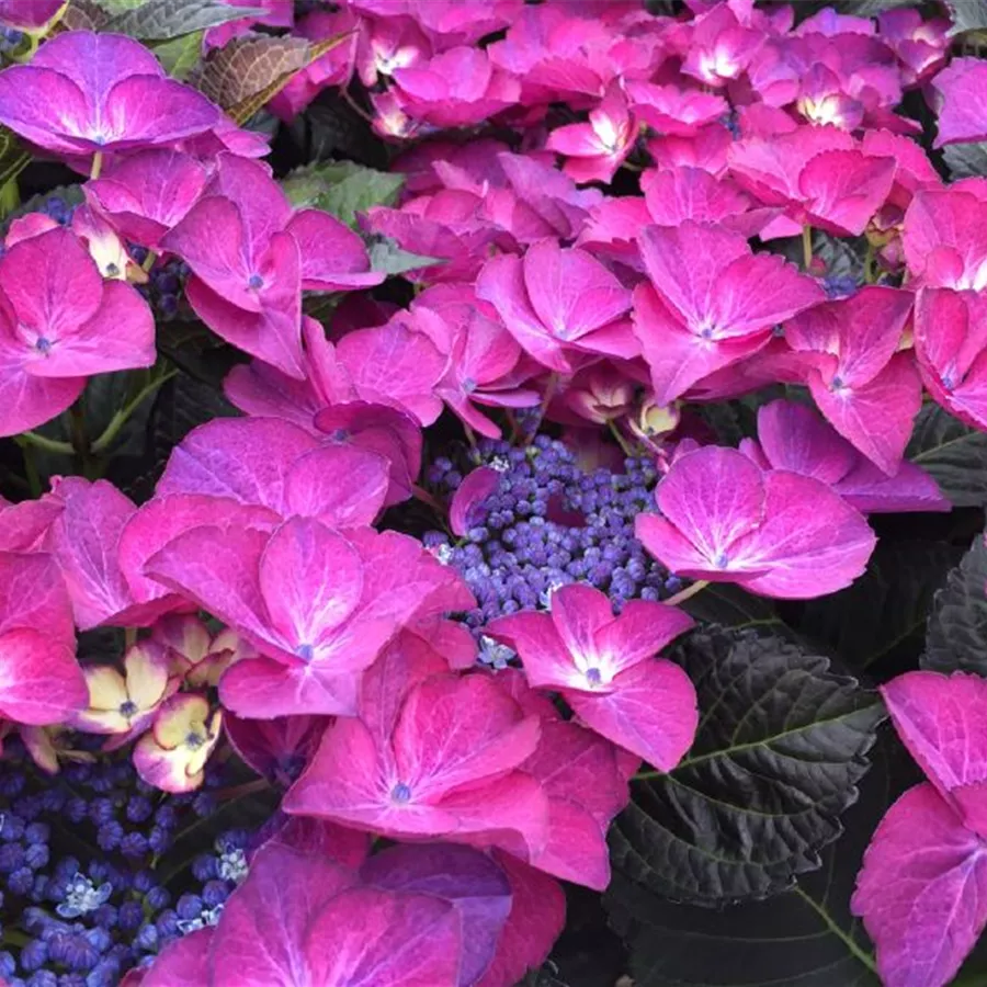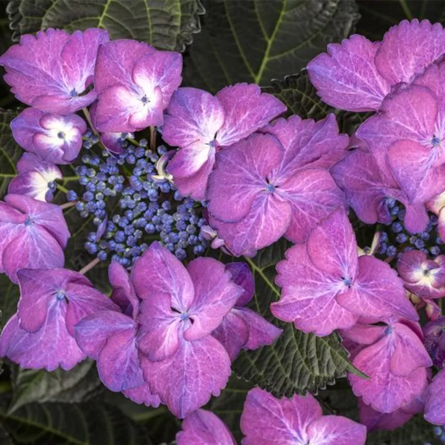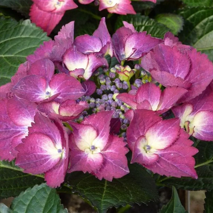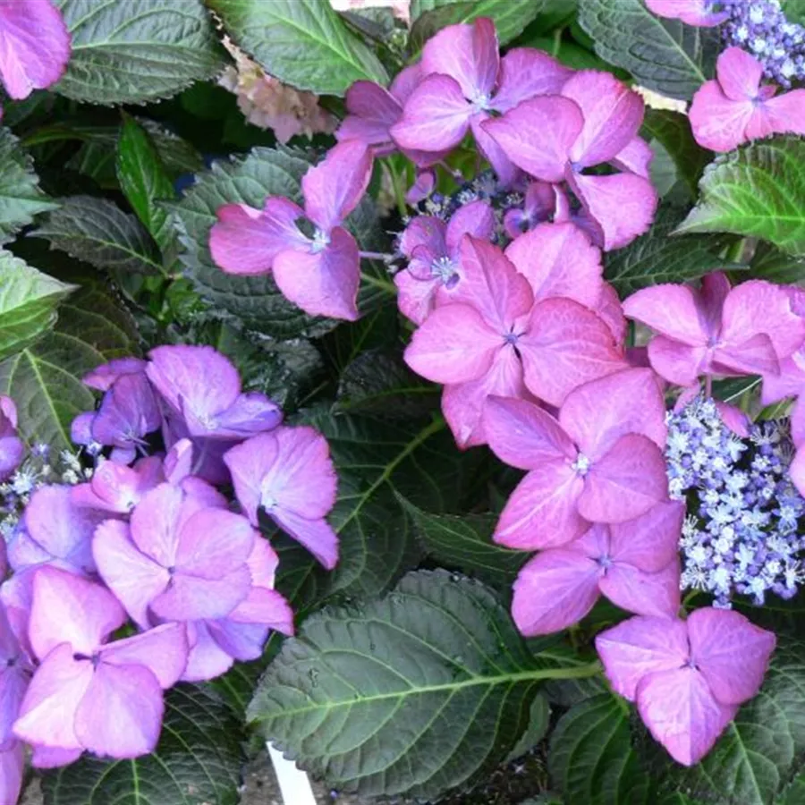 • Das dunkle Blattwerk, der Hortensie mit leuchtend intensiver Blütenpracht, bietet für jeden Garten einen außergewöhnlichen Charme.