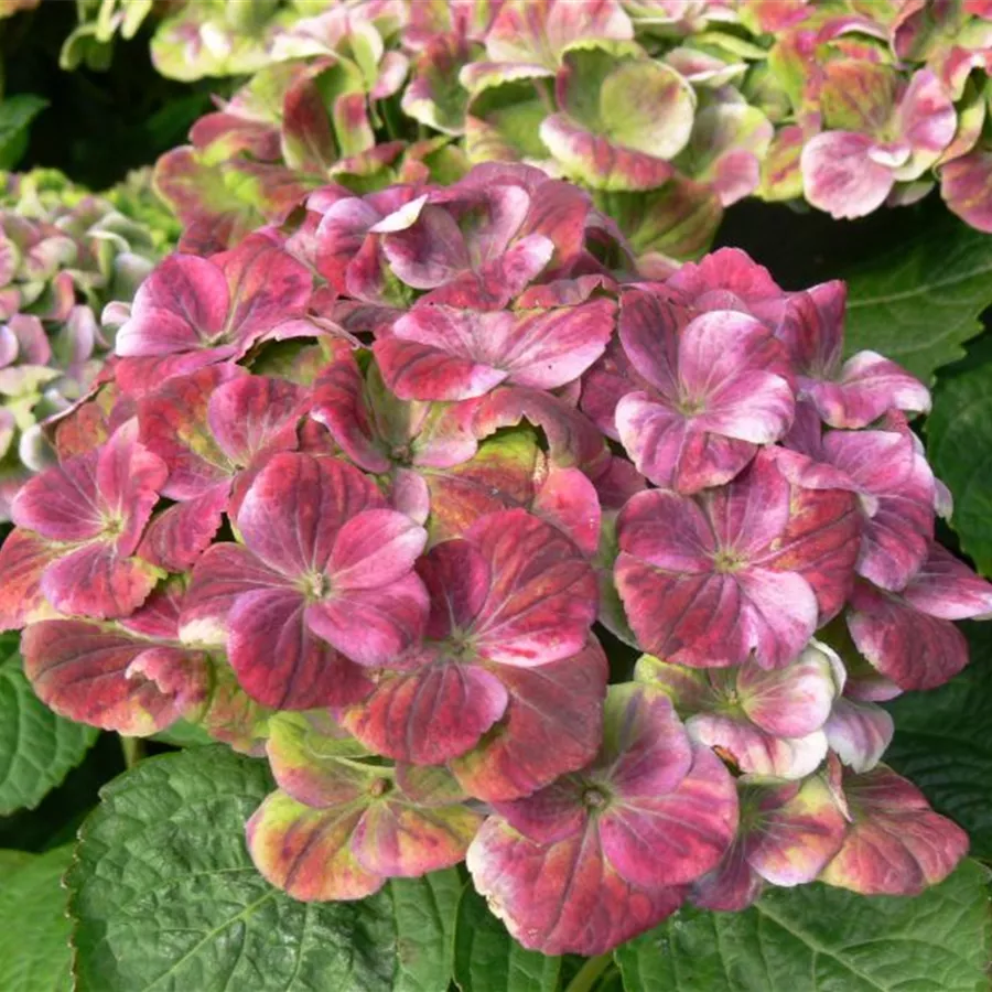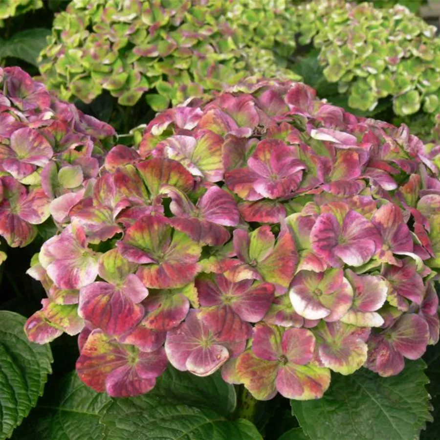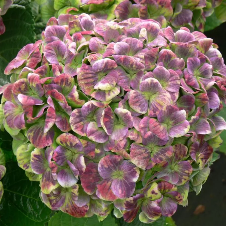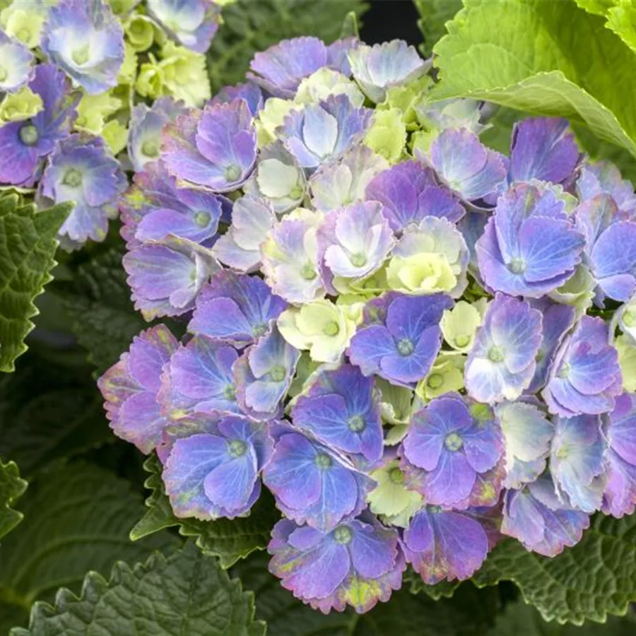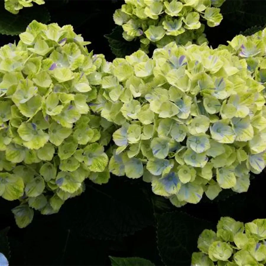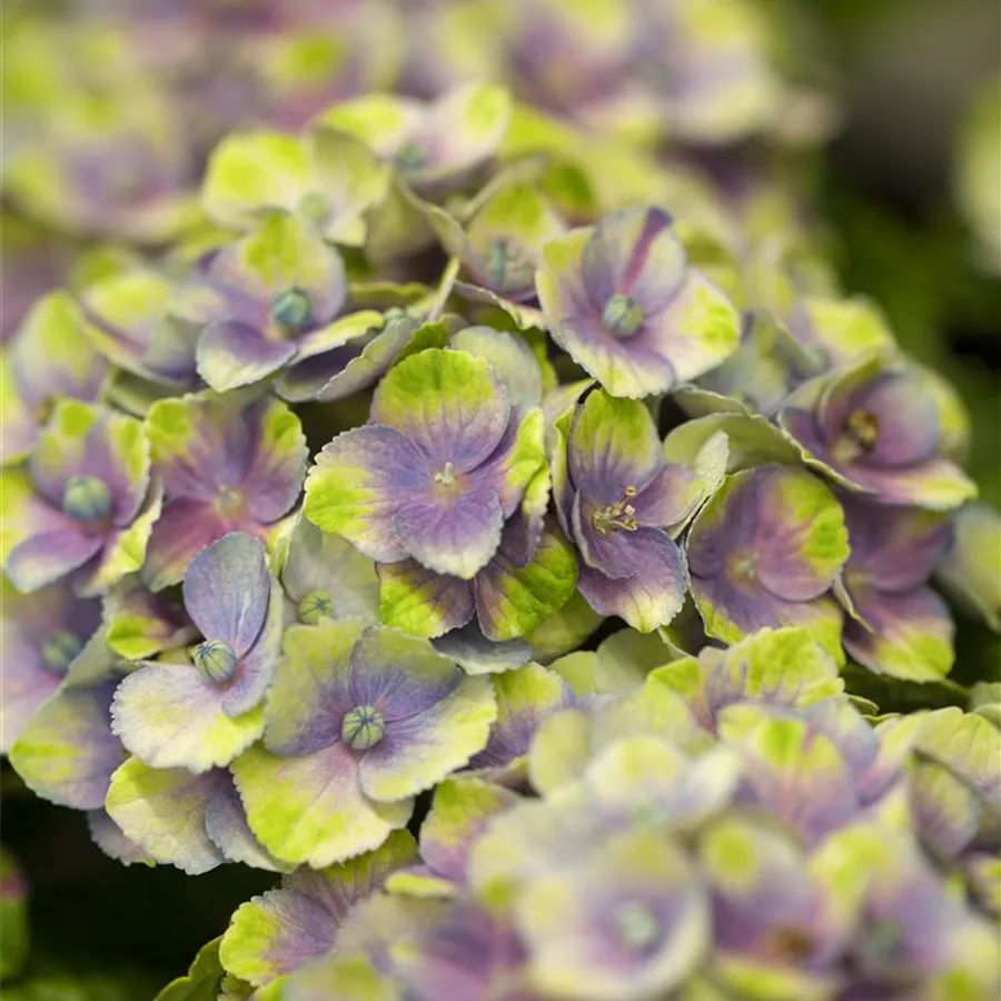 Diese außergewöhnliche Selektion hat grüne Blüten mit blau-violetten FleckenDie Bauernhortensie 'Magical Amethyst'®-blau hat kräftige ballförmige Blütenstände, die von Juni bis Oktober blühen. Die einzelnen Blütenblätter sind leicht zugespitzt und fühlen sich wie Wachs an. Ihre verschiedenen Blüh-Phasen verzaubern bei jedem Farbwechsel Im Aufblühen zeigt sie sich reingrün, danach mit blau bis violettblauer Zeichnung. Zum Herbst hin nimmt wieder die grüne bis dunkelgrüne Farbe überhand, die später tiefe rotviolette Abtönung kriegt.