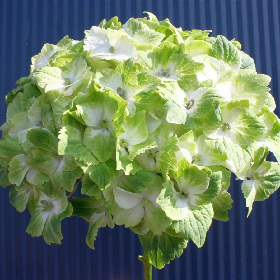 Stumpf weiße Blütenblätter mit stark grüner Zeichnung und violetten Knöpchen in der Mitte. Zum Herbst hin weiter vergrünend. Ein Bestseller, wenn erst die Blüten erscheinen.Die Bauernhortensie 'Magical Noblesse'® hat ballförmige Blütenstände, die von Juni bis Oktober blühen. Im Aufblühen zeigt sich die Blüte erstmal grün, später grün mit weiß. Im Herbst verfärbt sich die Blüte dunkelgrün, mit kirschroter Abtönung.
