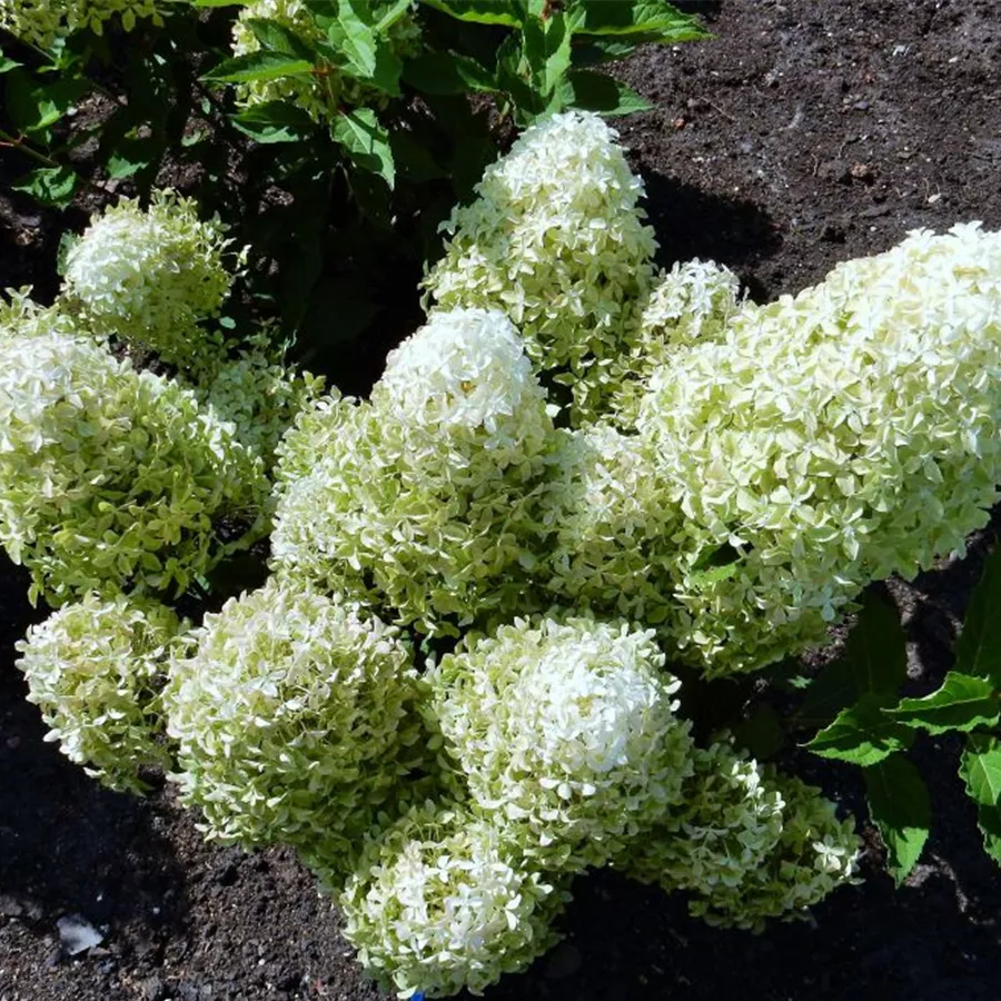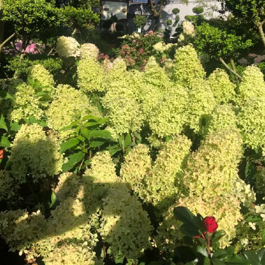 Die Rispenhortensie 'Magical Lime Sparkle' (Hydrangea paniculata) ist ein aufrechter, kompakter Kleinstrauch, der hellgrüne, in Rispen angeordnete Blüten mit einem angenehmen Duft hervorbringt. Sie erscheinen von Juli bis September. Zudem trägt die Rispenhortensie 'Magical Lime Sparkle', lanzettliche, dunkelgrüne Blätter. An einem sonnigen bis halbschattigen Standort mit durchlässigem, humosem Boden erreicht sie gewöhnlich eine Höhe von ca. 1 m und wird ca. 1 m breit.