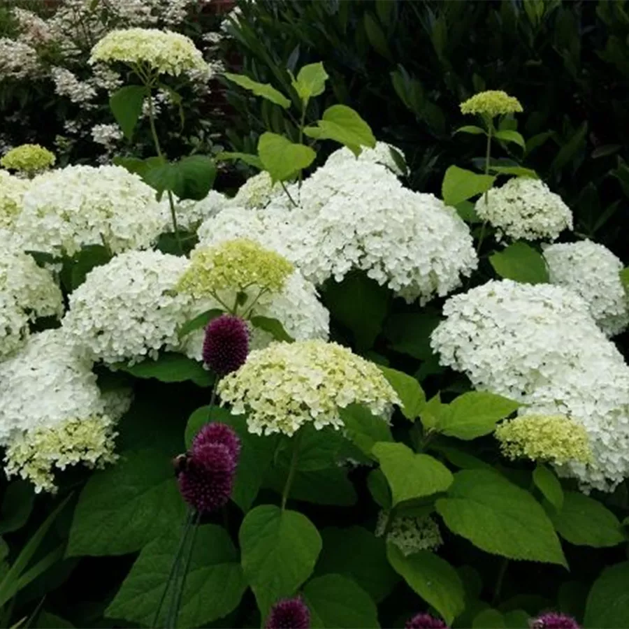 Wer kennt sie nicht, die Annabelle, der Klassiker unter den Schneeballhortensien. Wie bei allen Schneeballhortensie, empfiehlt es sich ein Korsett anzulegen.Die Schneeballhortensie 'Annabelle' bildet cremeweiße ballförmige Blütenstände von Juli bis September, die sich zum Herbst hin etwas grün verfärben.